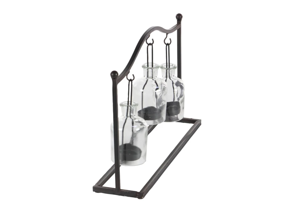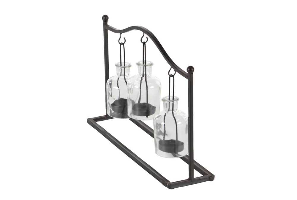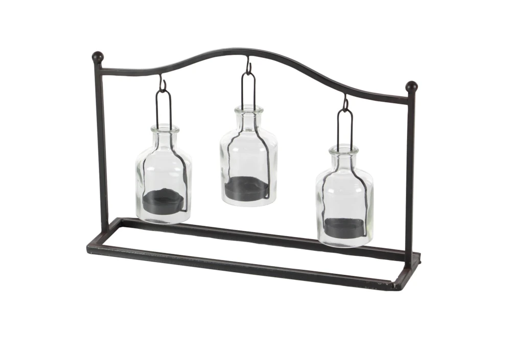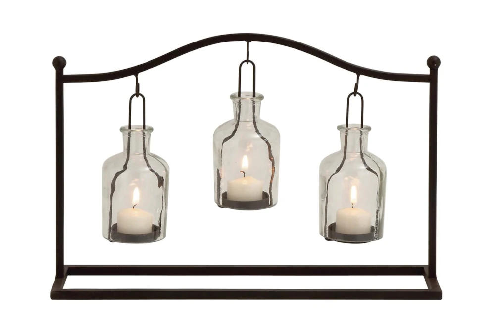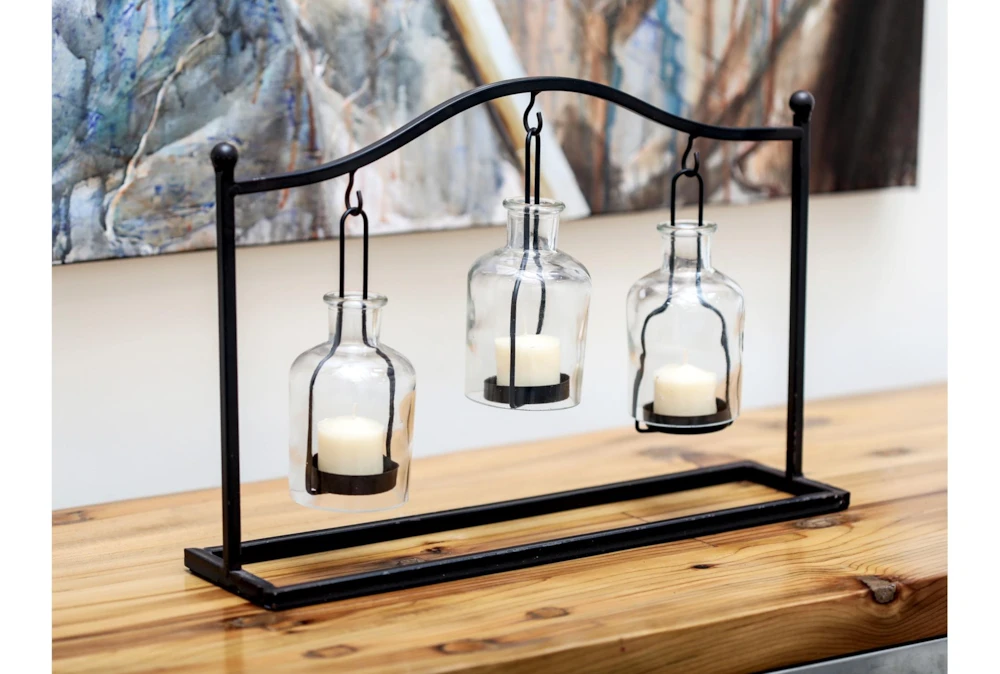11″ Metal & Glass Votive Holder – Rustic style, made of durable metal and glass with a classic matte black finish and clear glass shades. Enhance your farmhouse inspired home with cozy appeal and three suspended candle plates to protect flames from wind.