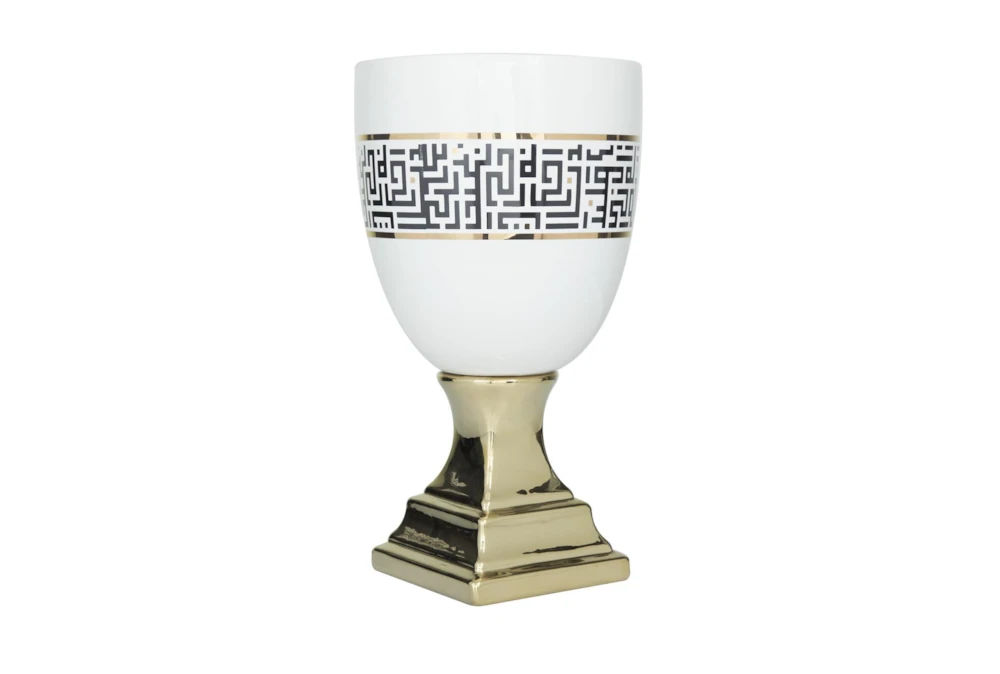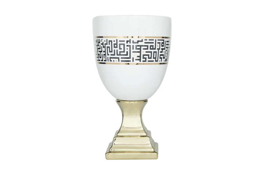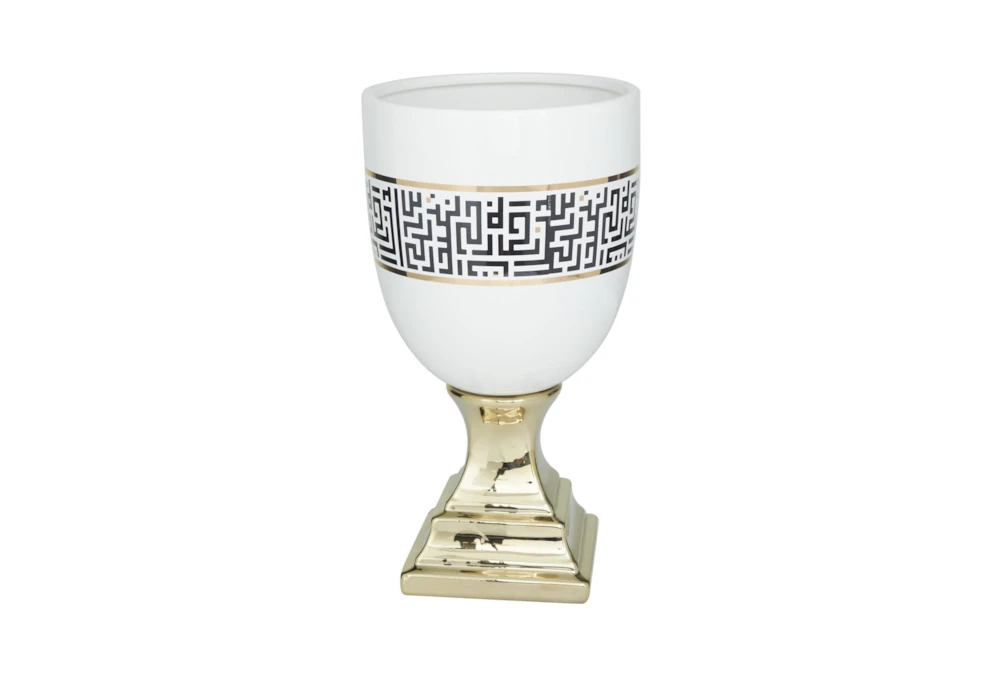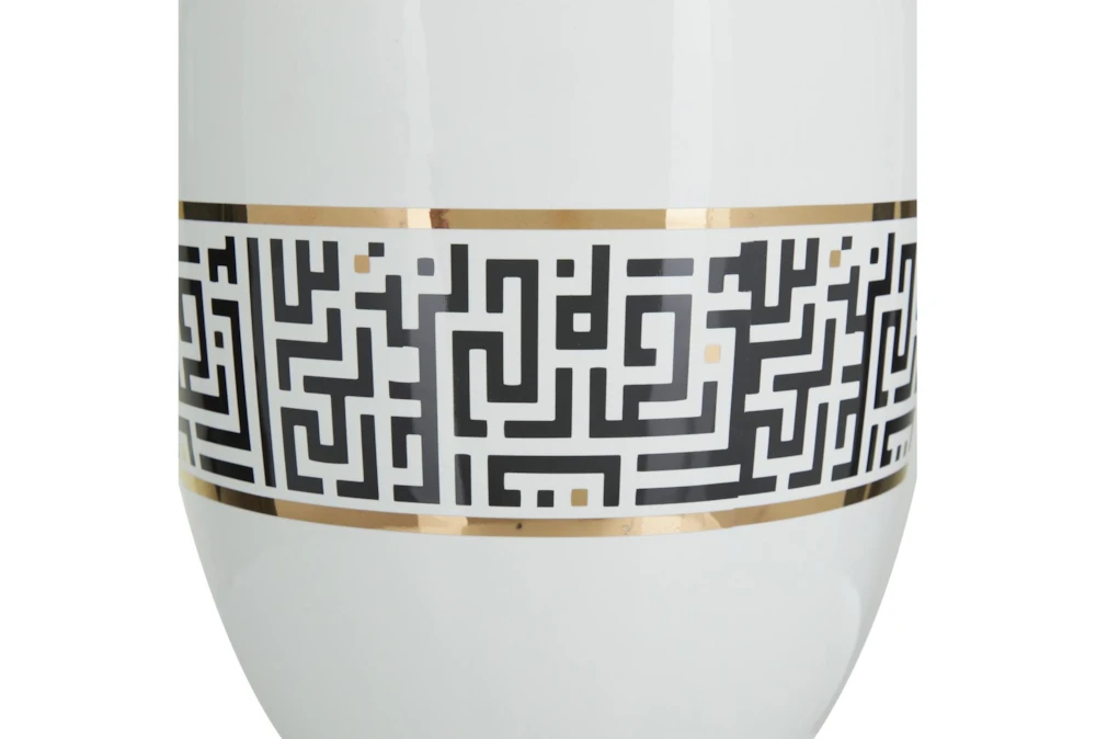 15 Inch White Metallic Gold + Black Maze Vase Planter