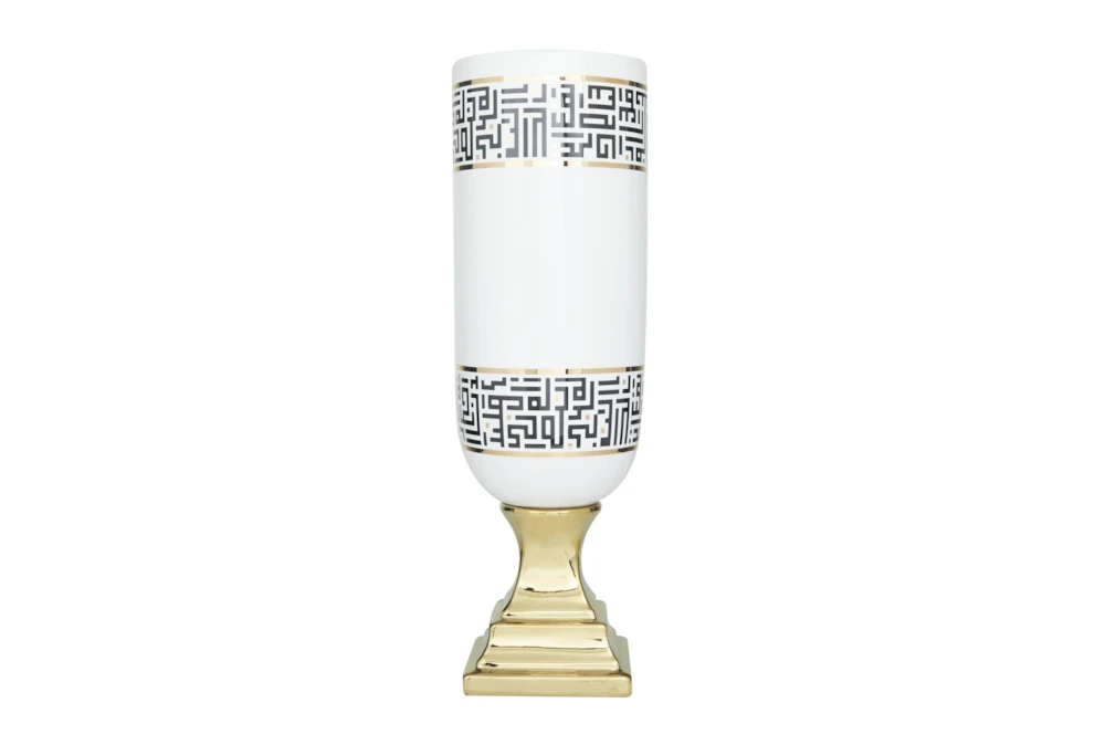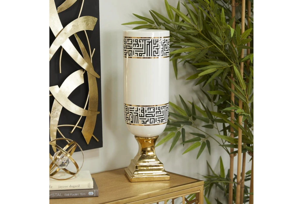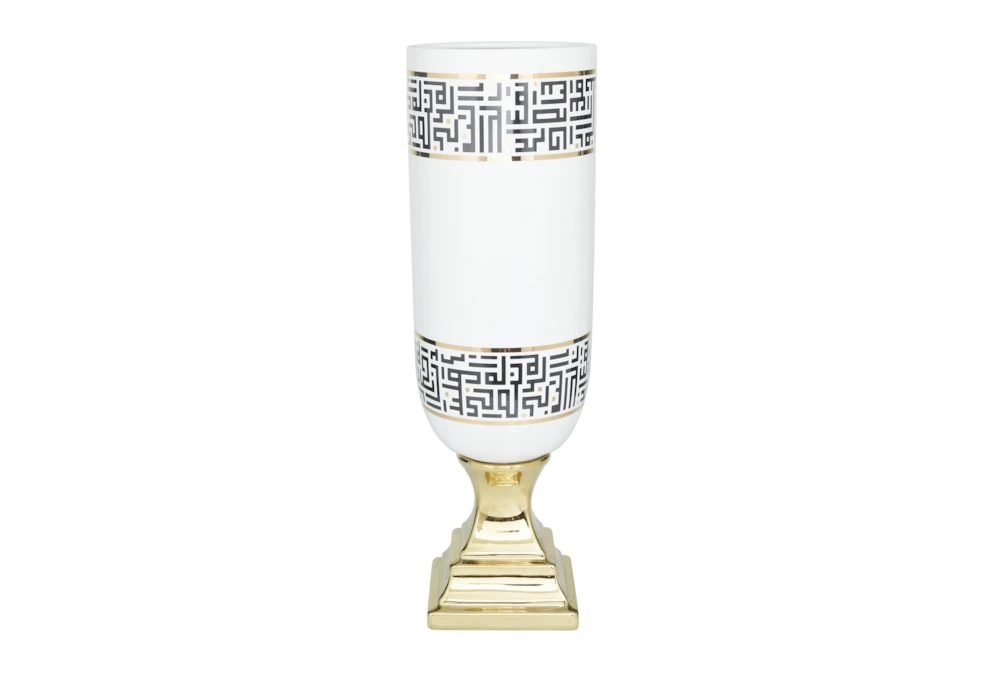 21 Inch White Metallic Gold + Black Maze Vase Planter
