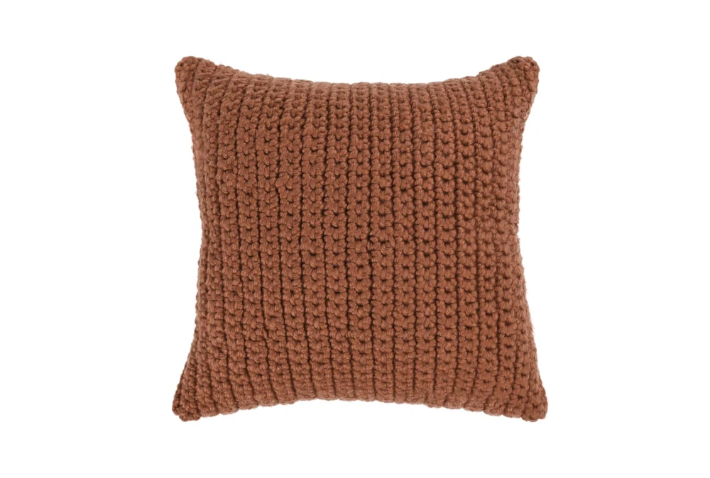 This 22X22 Terracota Performance Solid Knit Indoor Outdoor Throw Pillow is a modern addition to your decor. Made of 100% polyester, it features a handwoven knitted style and is designed to resist moisture and fading.