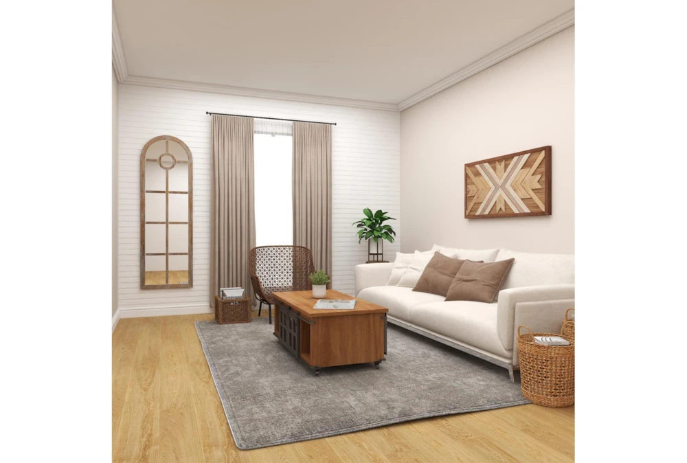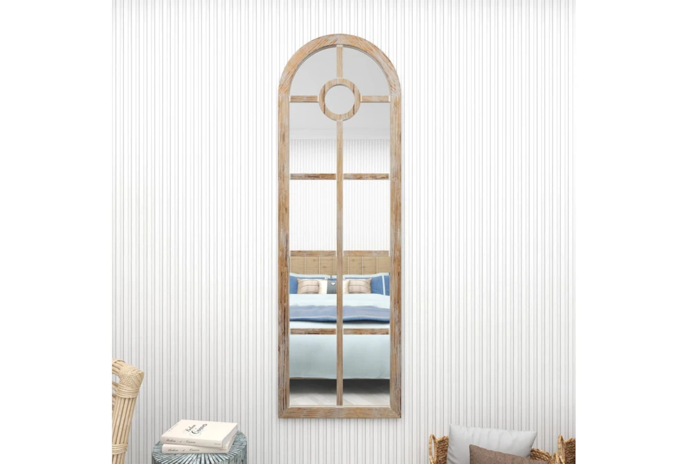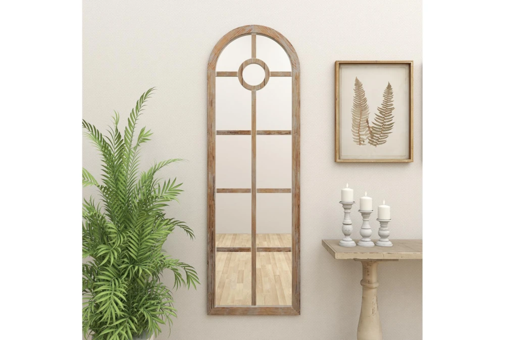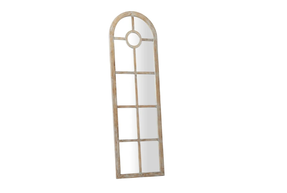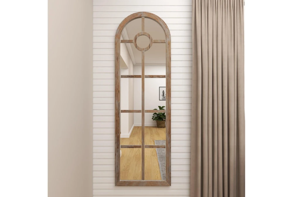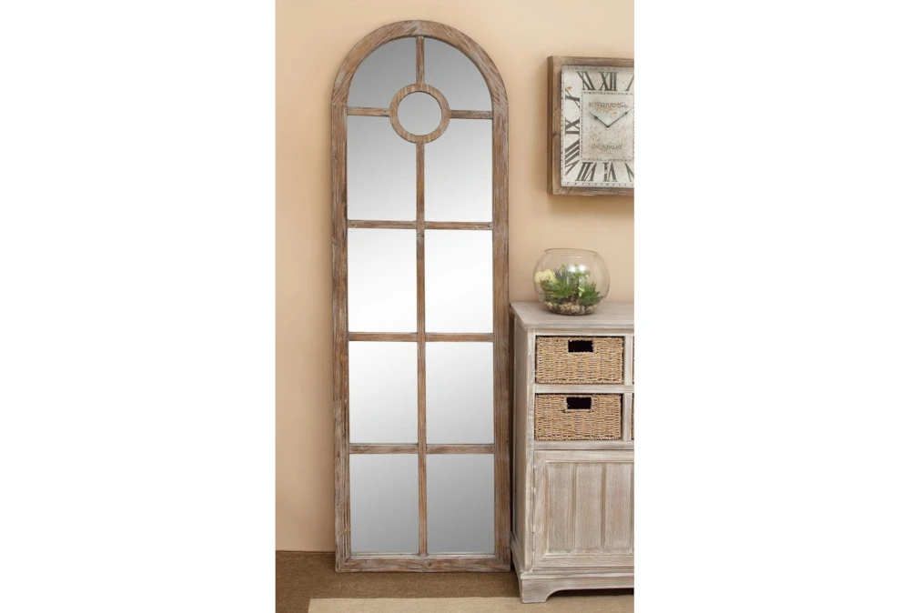 23X73 Grey Wash Wood + Metal Arch Grid Leaner Floor Mirror