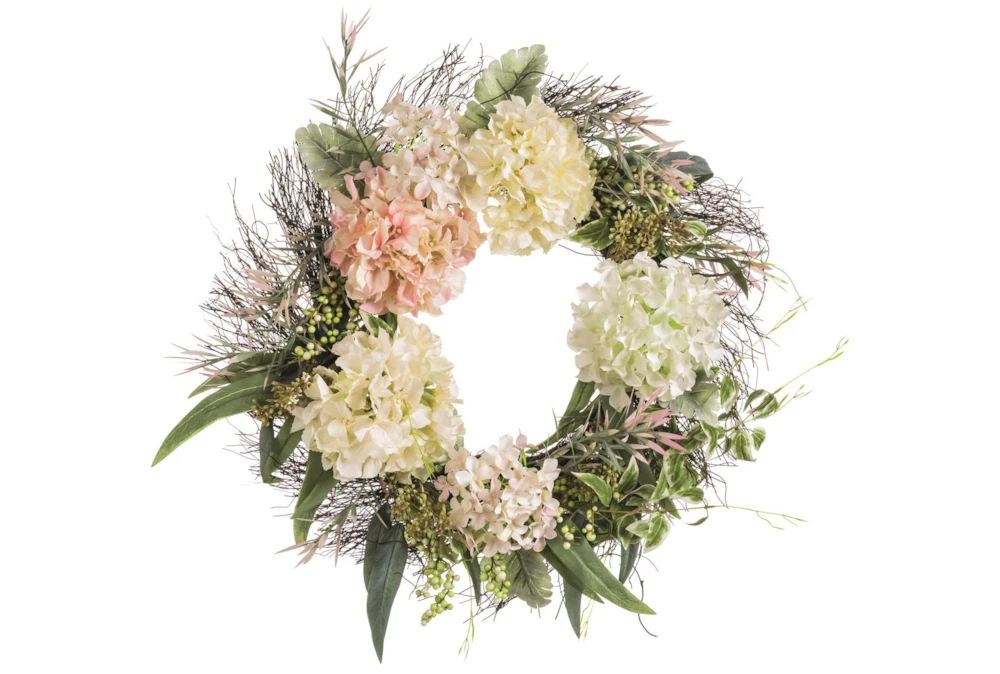 This 24″ Artificial Hydrangea Eucalyptus Berry Wreath is the perfect addition to any home decor, adding a touch of nature without the maintenance. Assembled with care, this wreath boasts a casual style and is made of durable plastic, ensuring it will last for years to come.