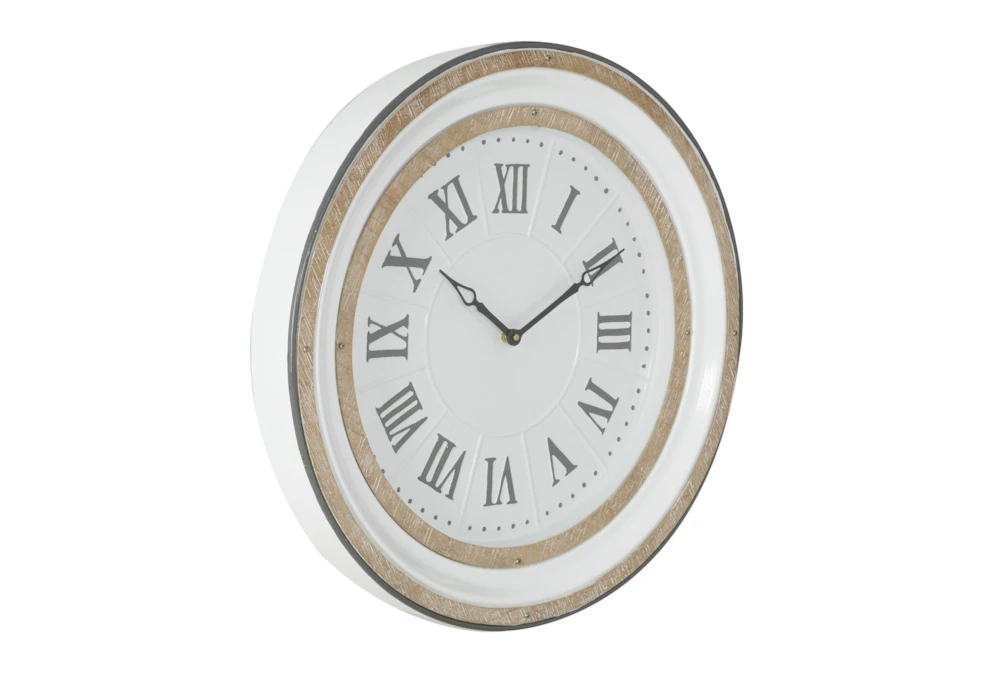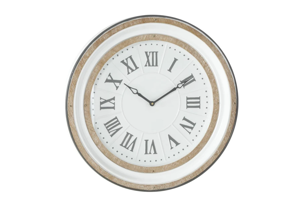 24 X 24 White And Wood Roman Numeral Wall Clock