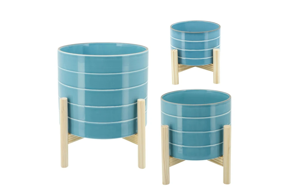 This 6 Inch Skyblue Striped Planter with Wood Stand is a beautiful addition to any modern home. The ceramic material is assembled with care, ensuring a durable and stylish piece that will complement any decor.