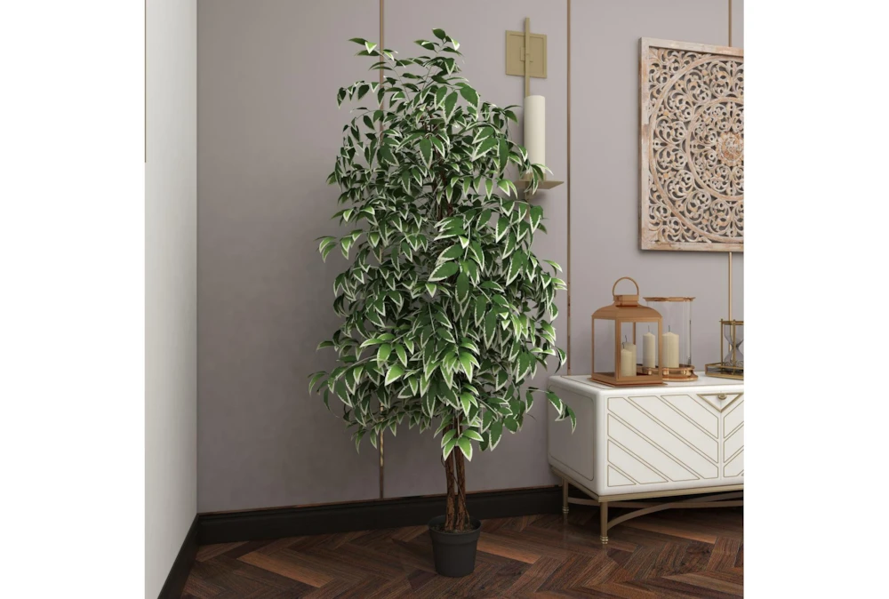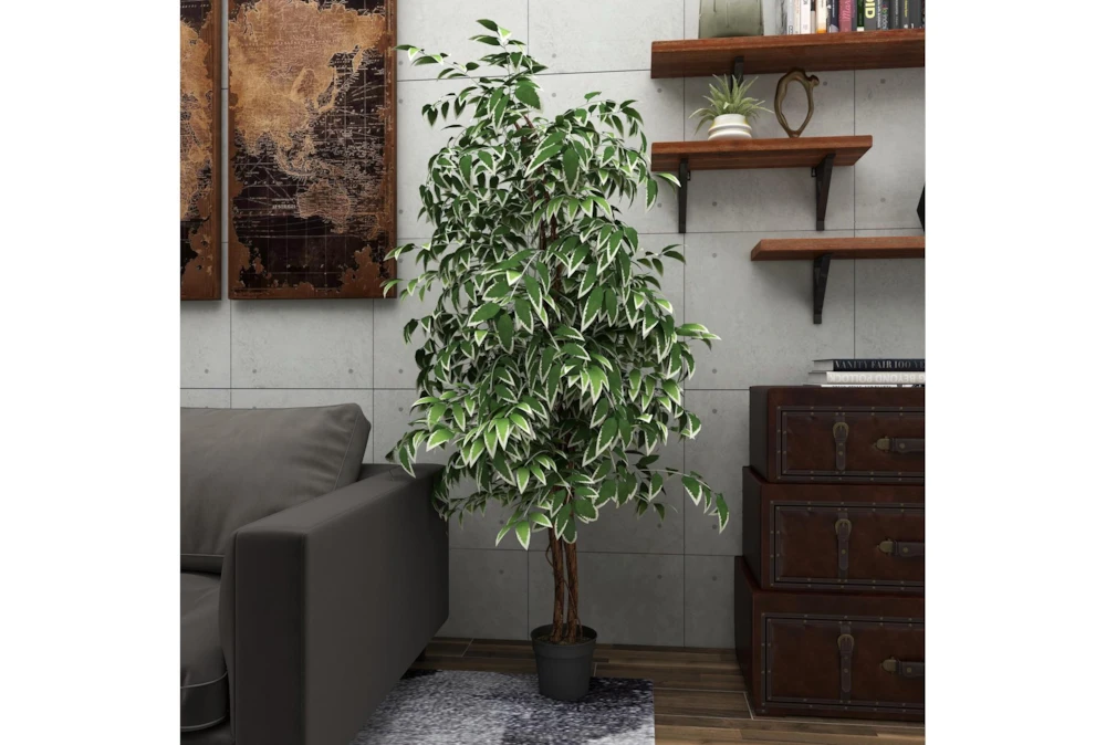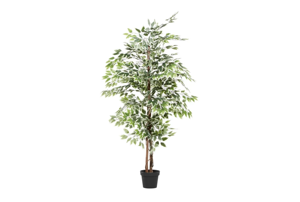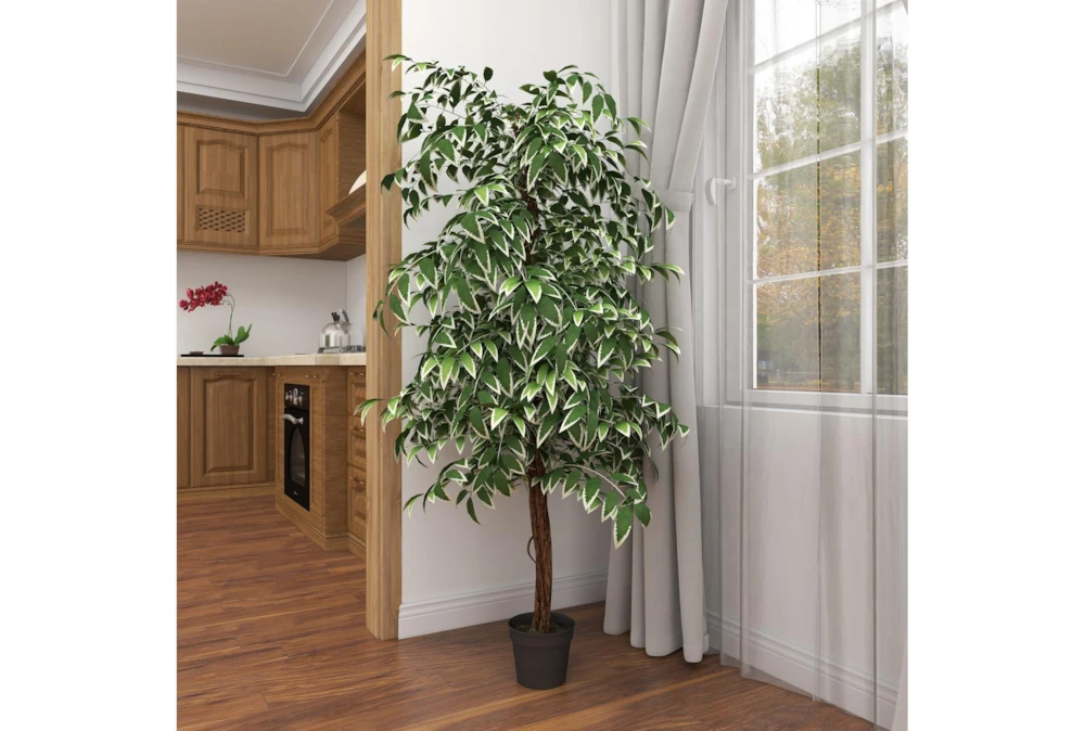73 Inch Green Ficus Artificial Tree With Black Plastic Pot