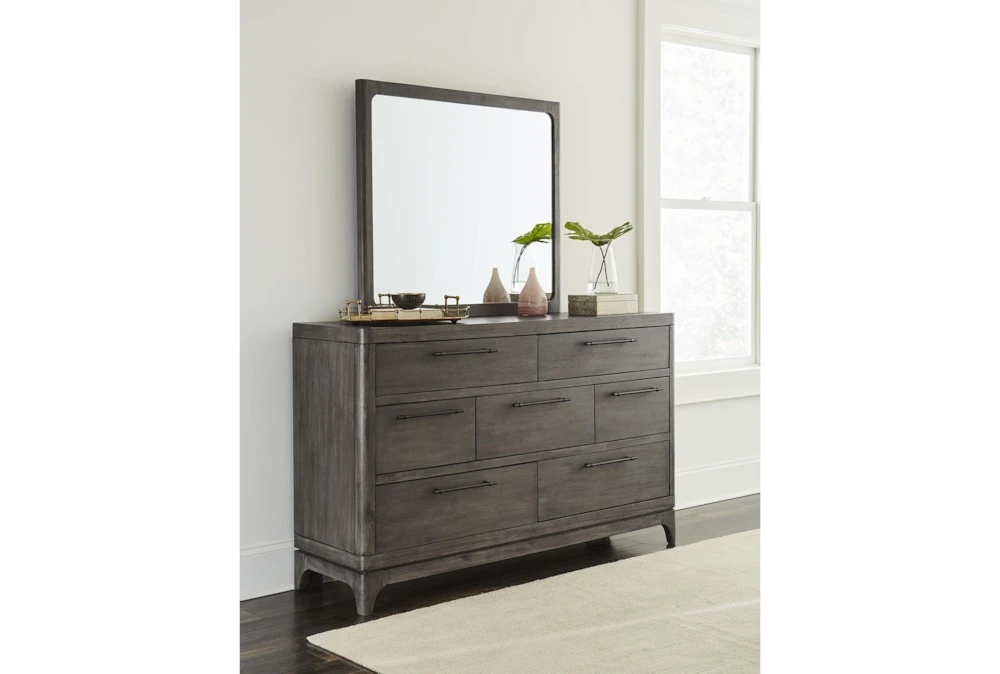 The Aberdeen Dresser Mirror is a contemporary piece made of wood, with a slate grey finish that adds a touch of elegance to any bedroom. The dresser mirror is available in three other colors: grey, acacia, and slate grey, making it easy to match any bedroom decor.