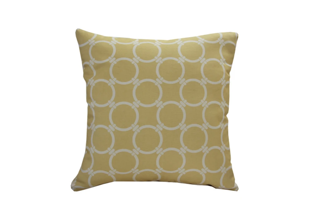 This beautiful Accent Pillow in Canary Links measures 18X18 and is made in the USA using high-quality fabric. Its contemporary style makes it the perfect addition to any bedroom.