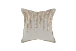 22X22 Natural Multi Linen With Leather Design Throw Pillow With Tassels