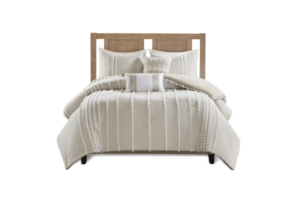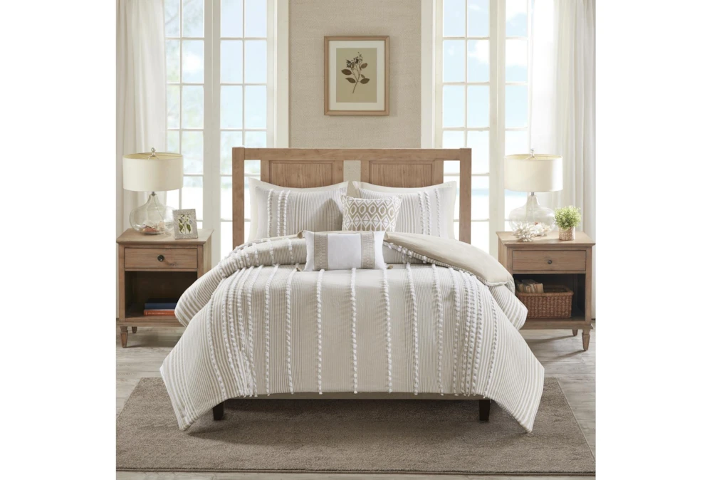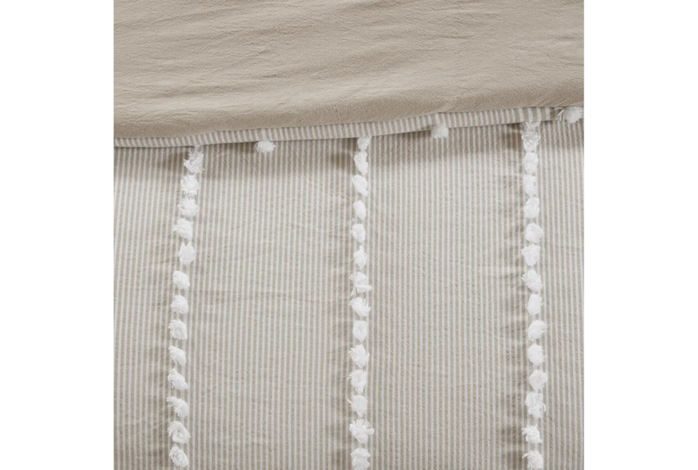 This Eastern King Comforter Set exudes a contemporary charm with its beige cotton fabric and playful pom pom accents. The 3-piece set includes everything you need to create a cozy and stylish bed.