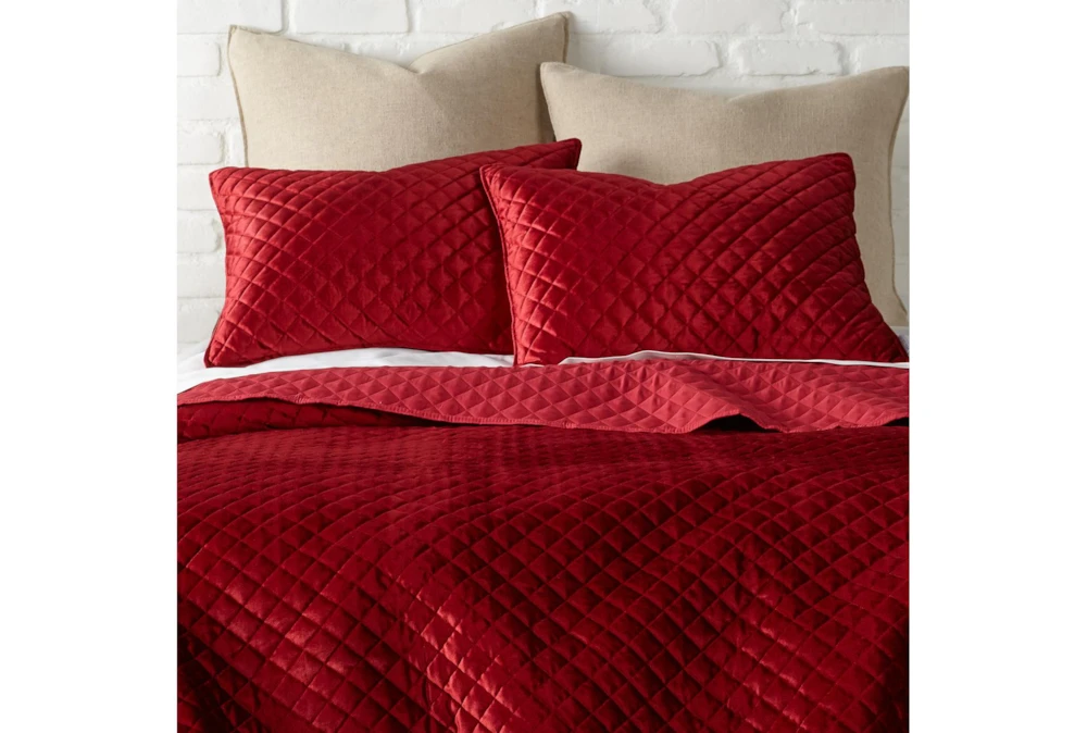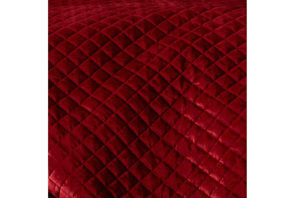 This 3 piece Eastern King quilt set features traditional style and is made of red diamond stitched polyester velvet. The set is also machine washable for easy cleaning.
