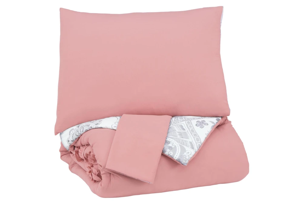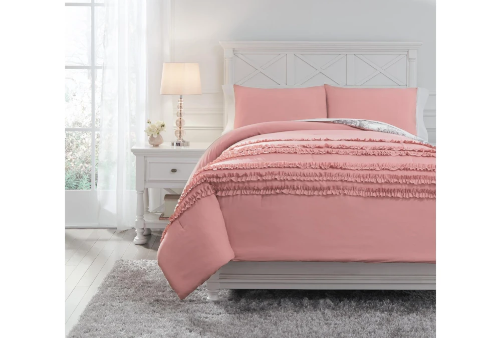 This Full Comforter-3 Piece Set in Ruffled Pink and Grey is the perfect addition to any contemporary bedroom. Made from high-quality polyester, it offers both style and comfort in one package.