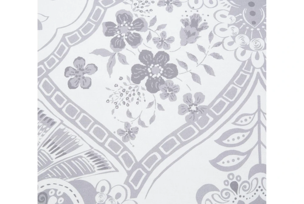 Solid in Pink with Ruffle Stripe Detail. Reverses to Mandala and Lotus Design in Pink, White and Gray. Polyester Microfiber Cover with Polyester Filling. Machine Washable.