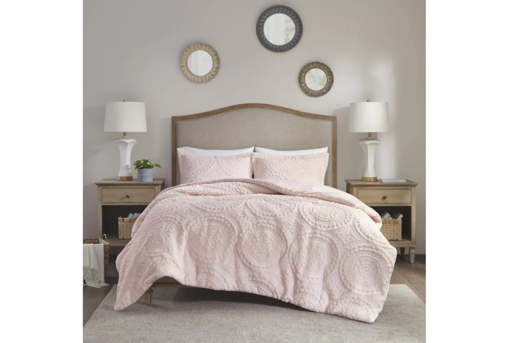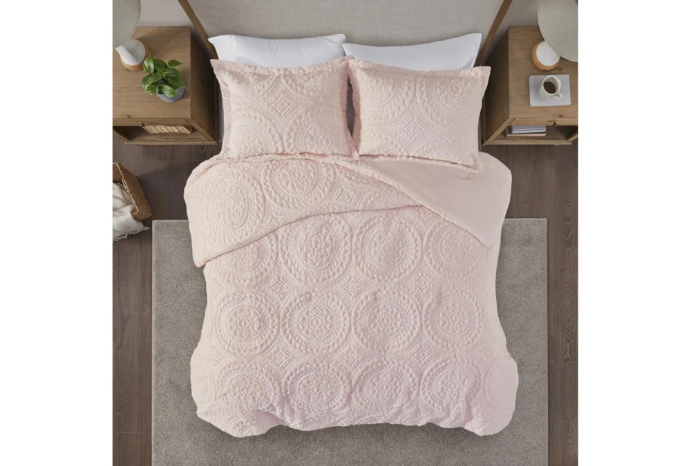 This Full/Queen Comforter-3 Piece Set in Plush Medallion Pink is the perfect addition to any contemporary bedroom. Made from high-quality polyester, this set includes three pieces for a complete and cozy bedding experience.