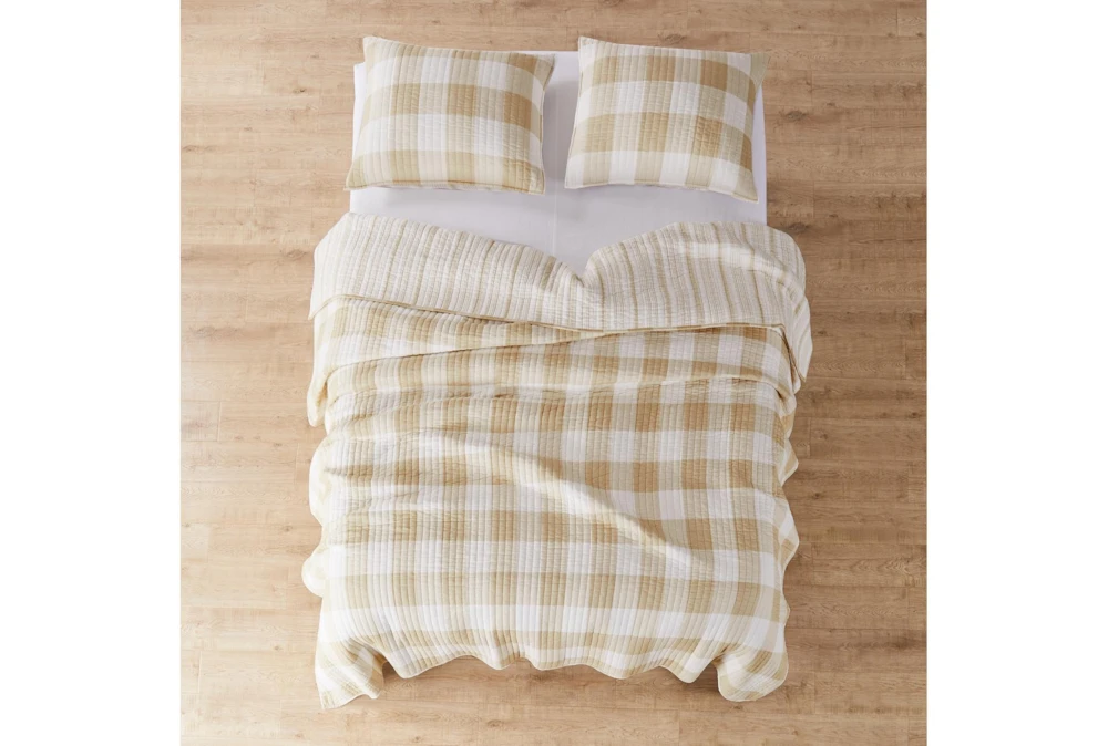 This Full/Queen Quilt 3-Piece Set features a reversible design with a Farmhouse Buffalo Plaid on one side and a Stripe Taupe on the other, made from high-quality cotton material. Add a touch of rustic charm to any dorm room or bedroom with this cozy and stylish bedding set.