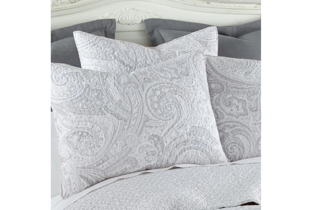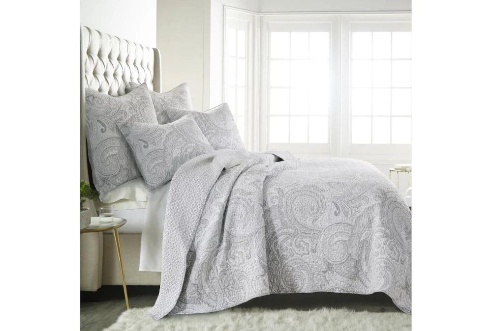 This Full/Queen Quilt-3 Piece Set features a reversible paisley to lattice pattern in grey cotton.