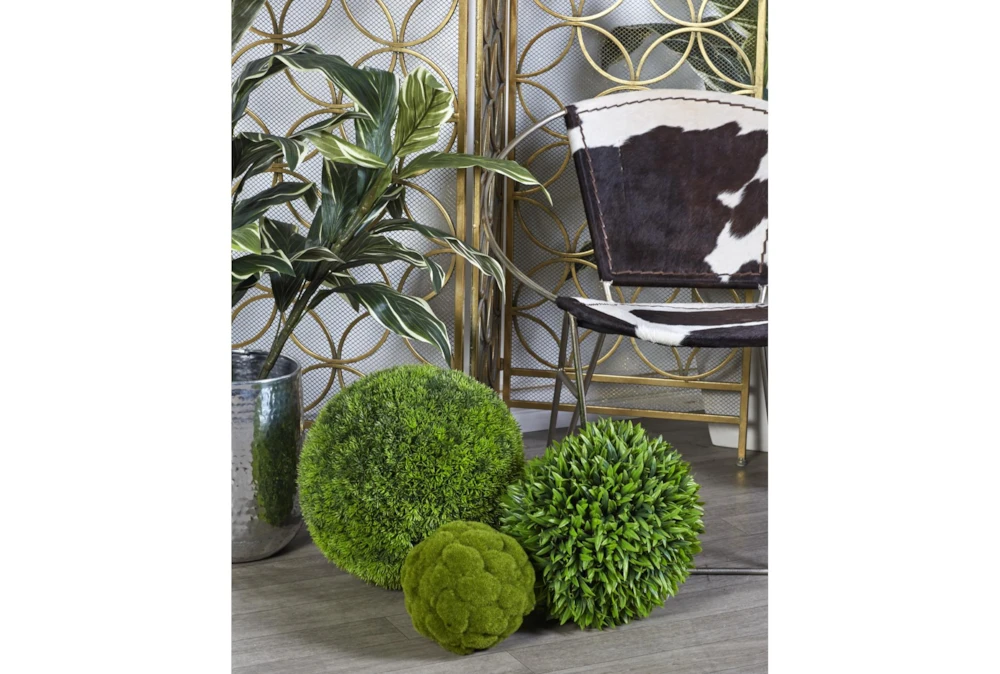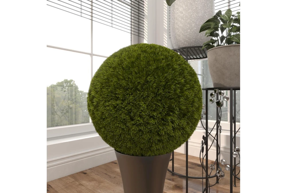 Use it as a centerpiece on the living room coffee table or a corner accent piece by the hallway console dresser. Add some greenery to your decor with no keep up effort with these artificial foliage. Place this plastic grass ball on a large planter or use it as a decorative table piece at weddings. This item ships in 1 carton. Suitable for indoor use only. Contemporary theme.