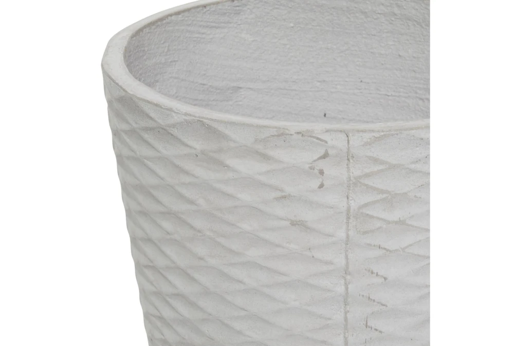 Verdant plants and flowering shrubs provide serene respite in these hectic times. And they need the proper holder to maintain a home’s theme. This set of two planters, crafted from fiber clay with light grey textured diamond patterns around the bodies, elevates the look of modern and contemporary-style homes and gardens. Place leafy plants and flowering shrubs to highlight the trendy style of gardens, patios, and indoor/outdoor spaces. Great additions to gardens, patios, and outdoor spaces with a modern and contemporary theme Wipe clean with a dry cloth. Suitable for indoor and outdoor use. Made in China These indoor planters come as a set of 2. Contemporary design. This item comes shipped in one carton.