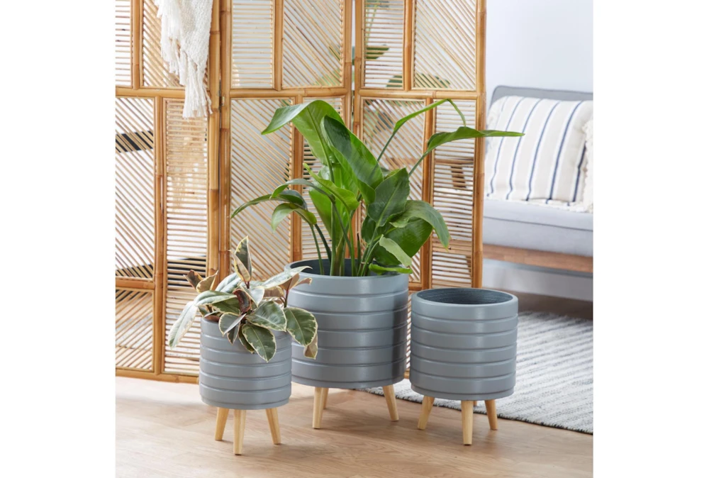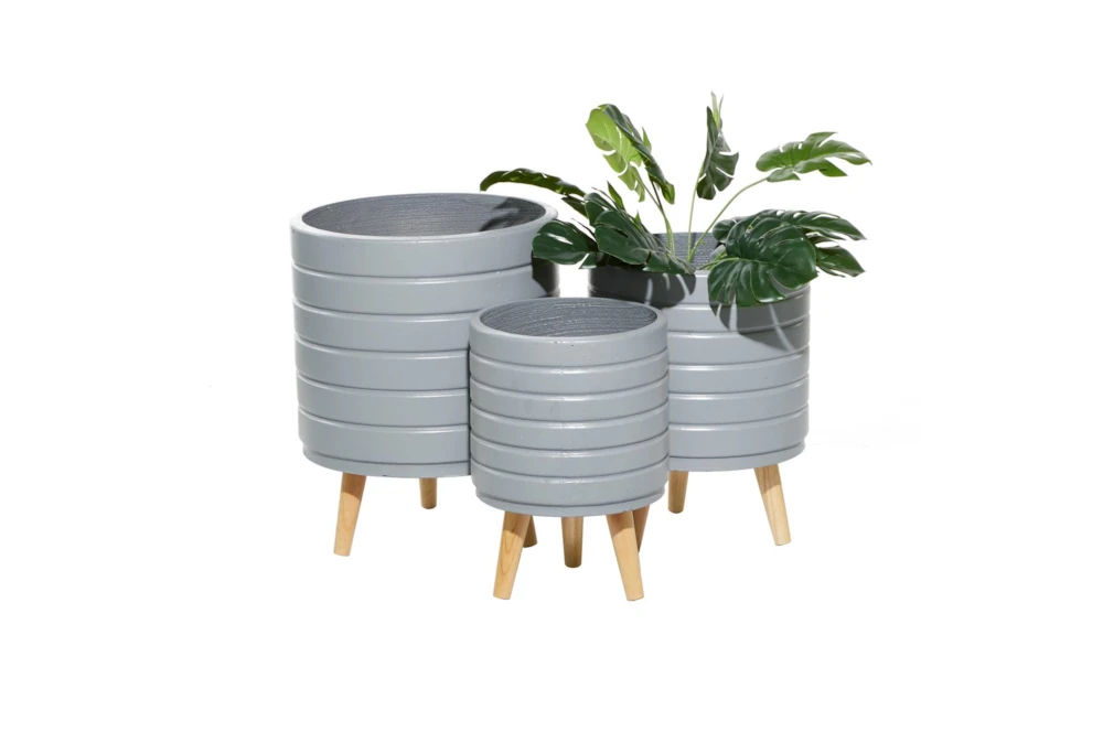 This Grey Wood Planter Set of 3 is the perfect addition to any modern decor with its tall and sleek design. Made from multi-media materials, these planters are both stylish and durable.