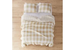 This King Duvet is made of 100% Belgian Flax Linen and features a modern stripe design with a self flange and metered edges. The natural beige color and rustic style make it a perfect addition to any bedroom decor.