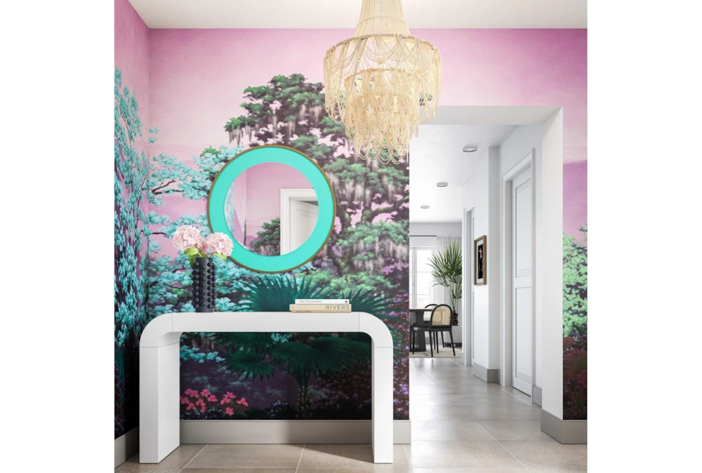 The Lucille Mirror is a beautiful modern piece made entirely of glass. Its sleek and stylish design will add a touch of elegance to any room.