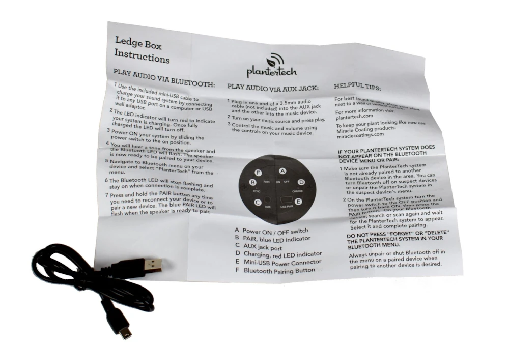 Allows wireless paring and streaming of music from enabled cell phones, tablets, computers and other portable audio recording devices from 30’ away.