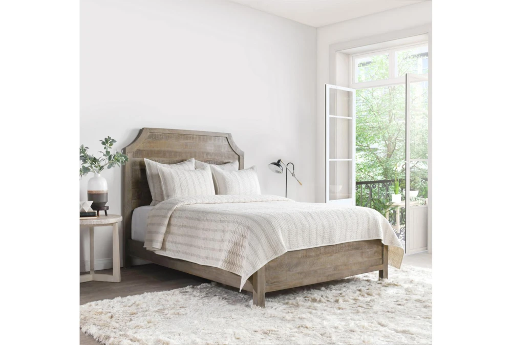 This queen-sized quilt is made of a soft natural stripe linen-cotton blend with a textured ivory finish, providing a rustic touch to any bedroom. The quilt is certified STANDARD 100 by OEKO-TEX and undergoes third-party testing to ensure that every component is free from harmful substances. The relaxed natural stripe design is enhanced by a hand quilted technique, giving the quilt a unique and cozy feel.
