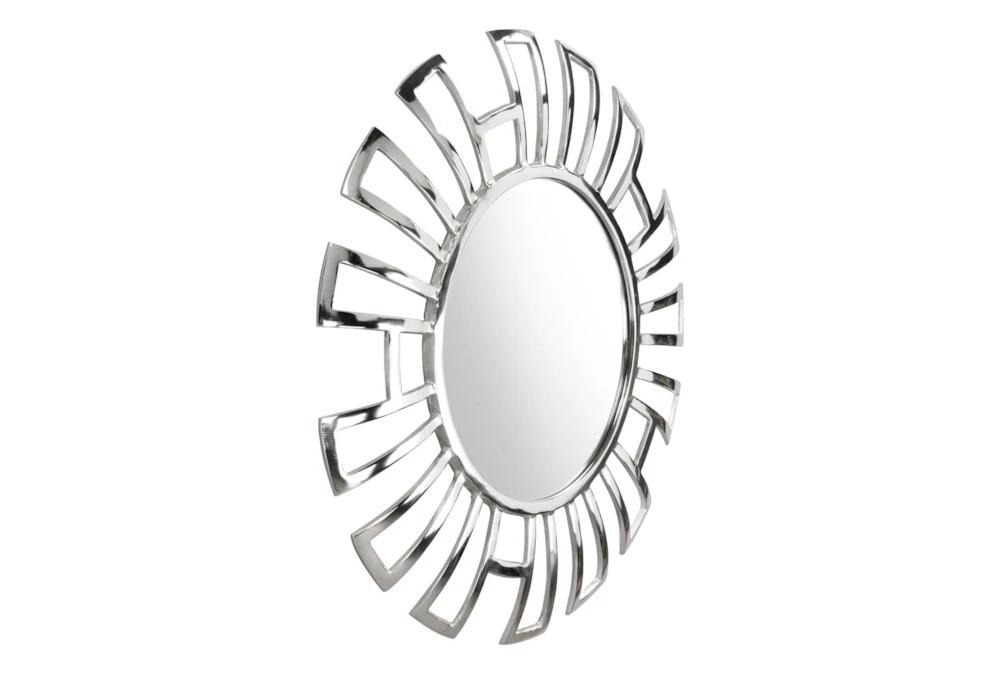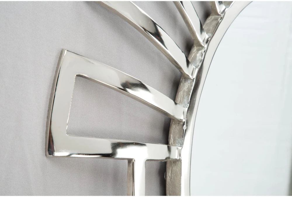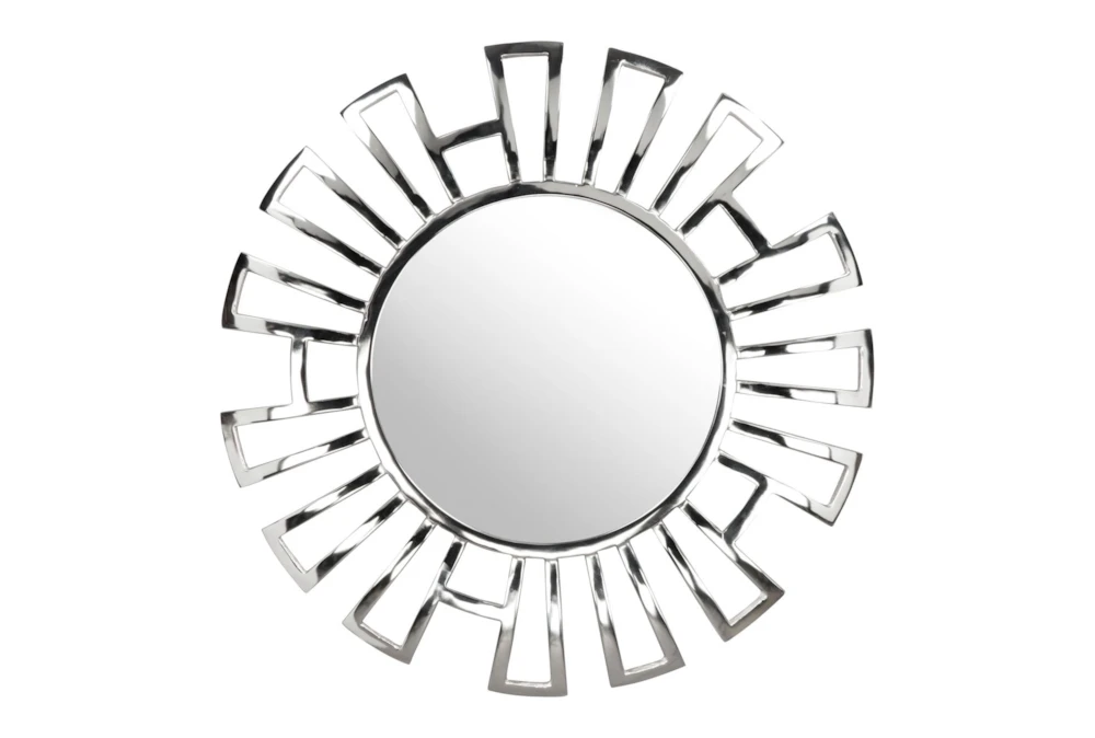This modern Silver Circle Wall Mirror with Rectangle Cut Outs is an elegant addition to any room. Made of high-quality metal, it is both durable and stylish.