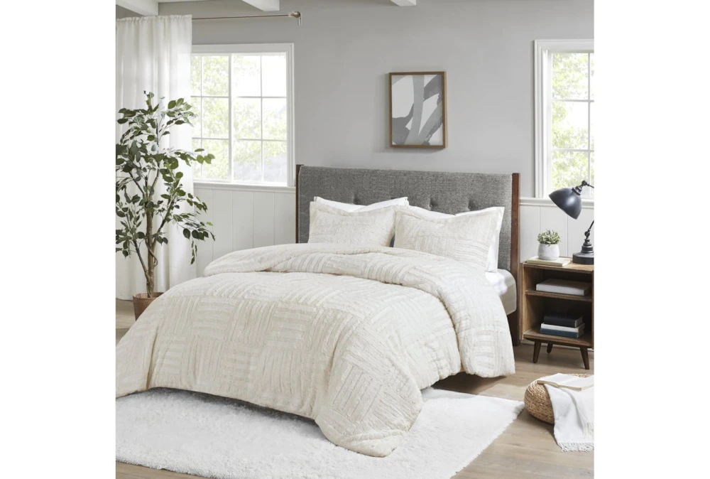 COMFORTER: CHECKBOARD BRUSHED FAUX FUR FACE, SOLID FAUX FUR REVERSE, DOWN ALTERNATIVE FILL, JUMP TACK