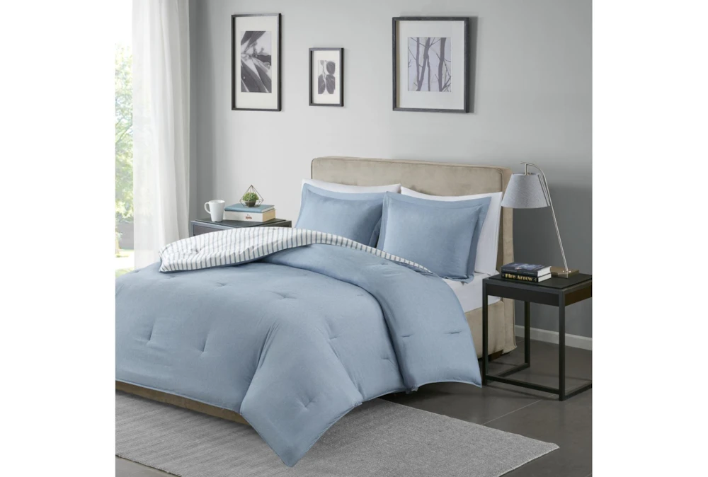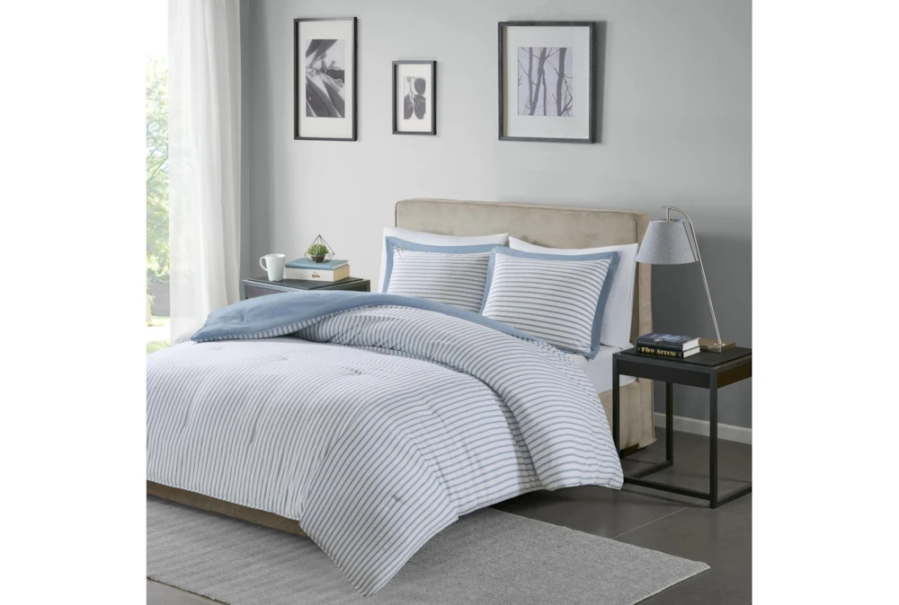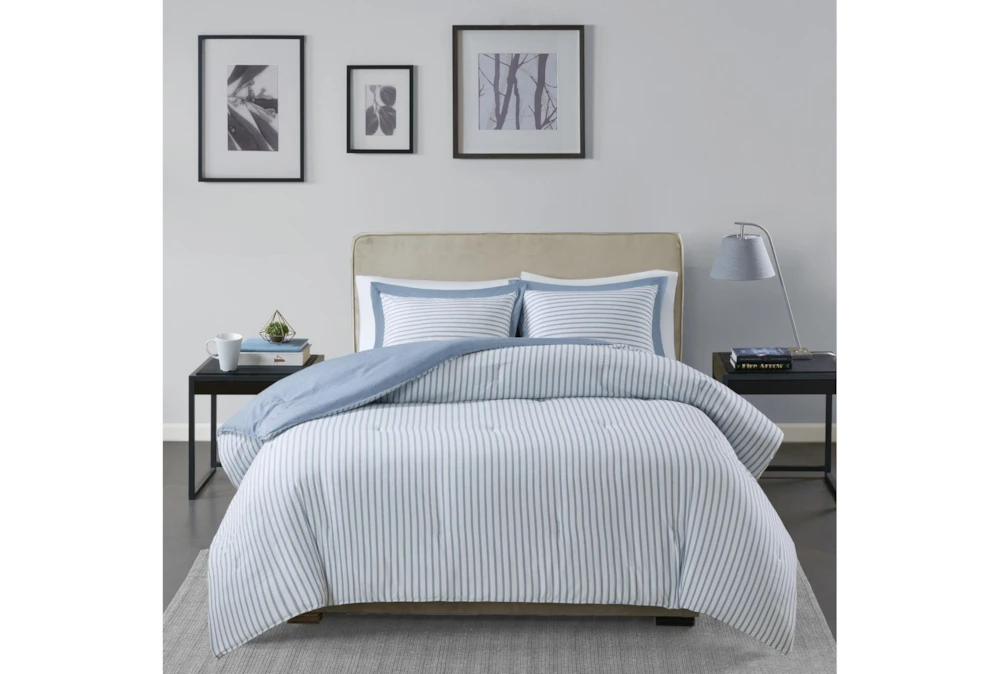This Twin Comforter-2 Piece Set Reversible Stripe Down Alternative Blue is the perfect addition to any contemporary bedroom.