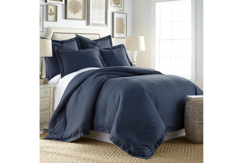 This Twin Washed Linen Duvet Cover in Navy is a modern addition to any bedroom. Made of linen, it is machine washable and comes in a beautiful shade of blue.
