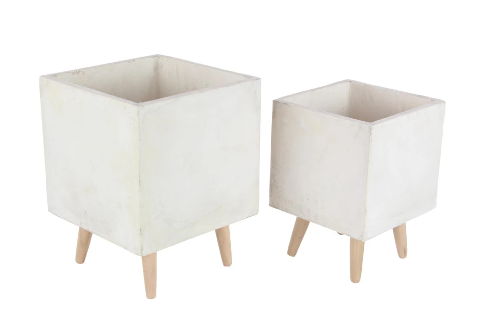 White 18 Inch Fiber Clay Wood Planter Set Of 2