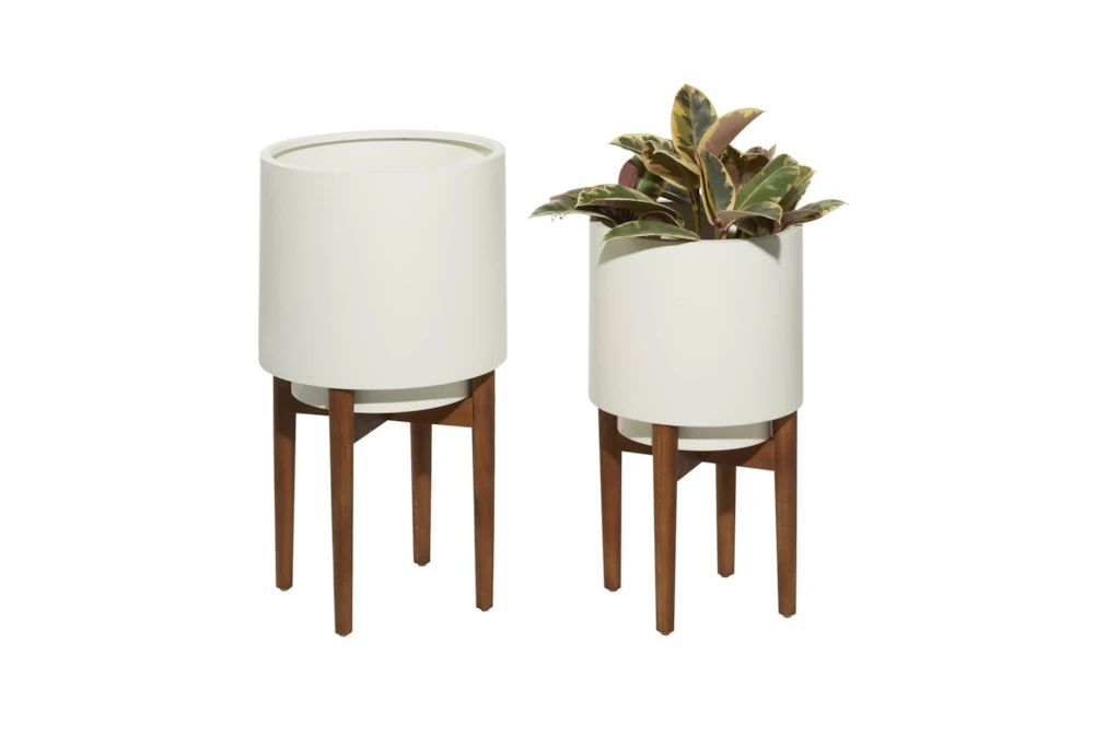 Recommended for use with indoor plants that do not require much water or sunlight. Designed with black rubber stoppers at the base that prevent scratching furniture and table tops, as well as sliding around. This item ships in 1 carton. Suitable for indoor and outdoor use. Planters do not have drainage holes but they are not watertight. Each set includes with 2 planters. Contemporary style.