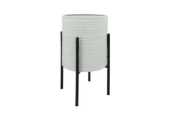 Enhance the beauty of your outdoor space with the White S/2 Dotted Planters in Metal Stand, a modern-style set of two tall planters made of metal. Perfect for adding a touch of elegance to your garden or patio, these planters are a must-have for any plant enthusiast looking to bring their outdoor decor to the next level.